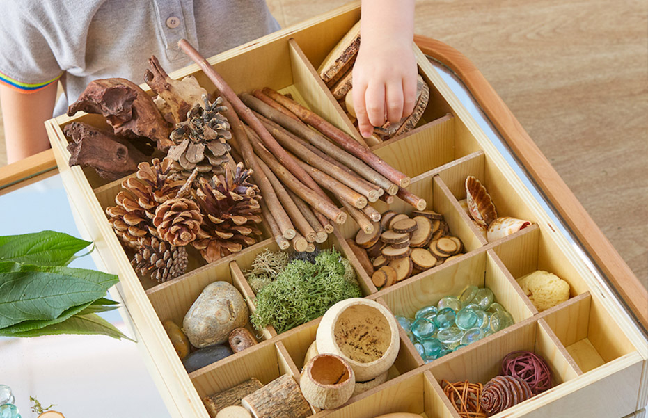 Because of the range of possibilities for materials, Loose parts are a developmentally inclusive material and can be found in our toddler room through to our school age classrooms.